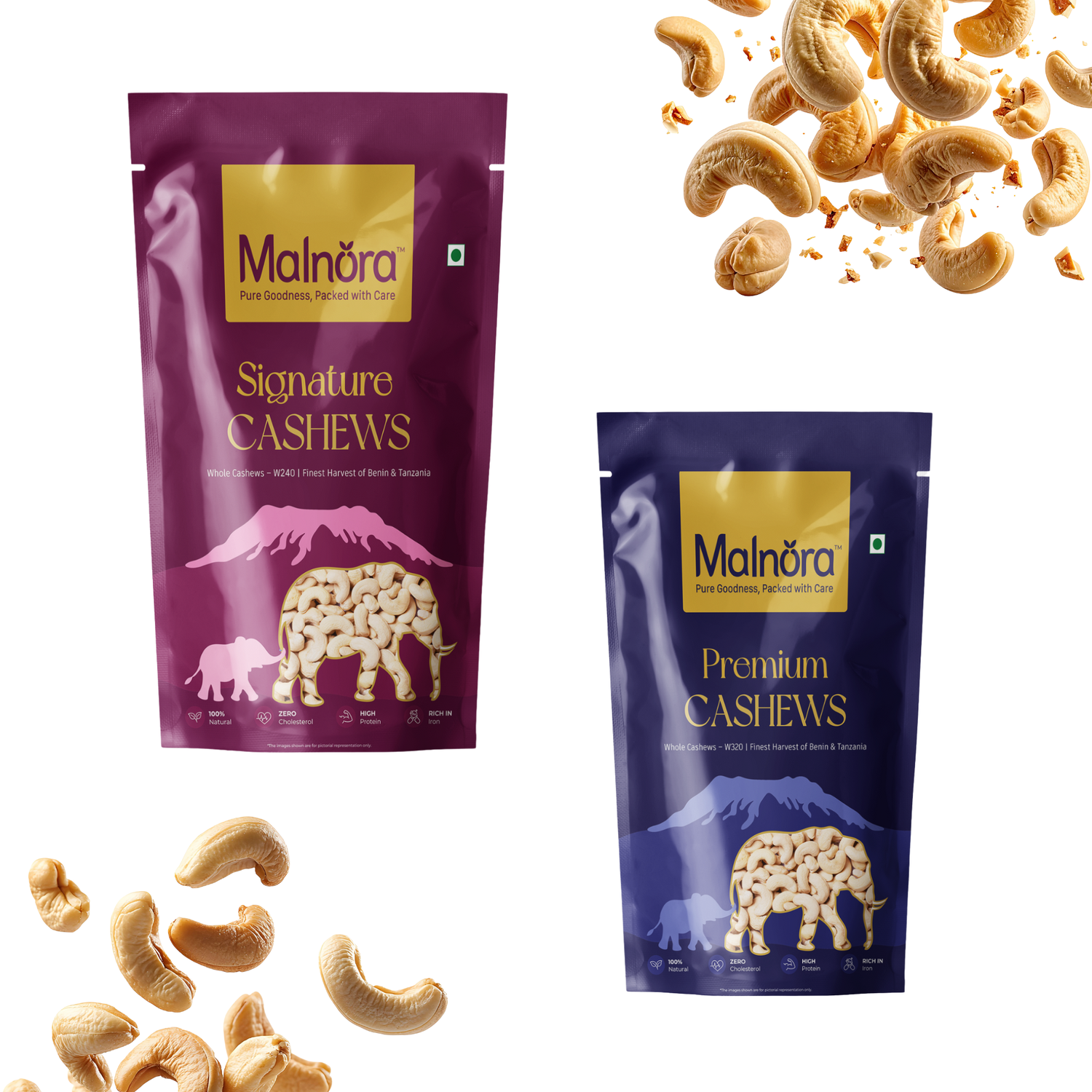 Malnora Cashews are grown in the finest farms of Benin and Tanzania and carefully processed in India under the highest quality standards. With superior taste, size, and freshness, they represent some of the world’s finest quality cashews.